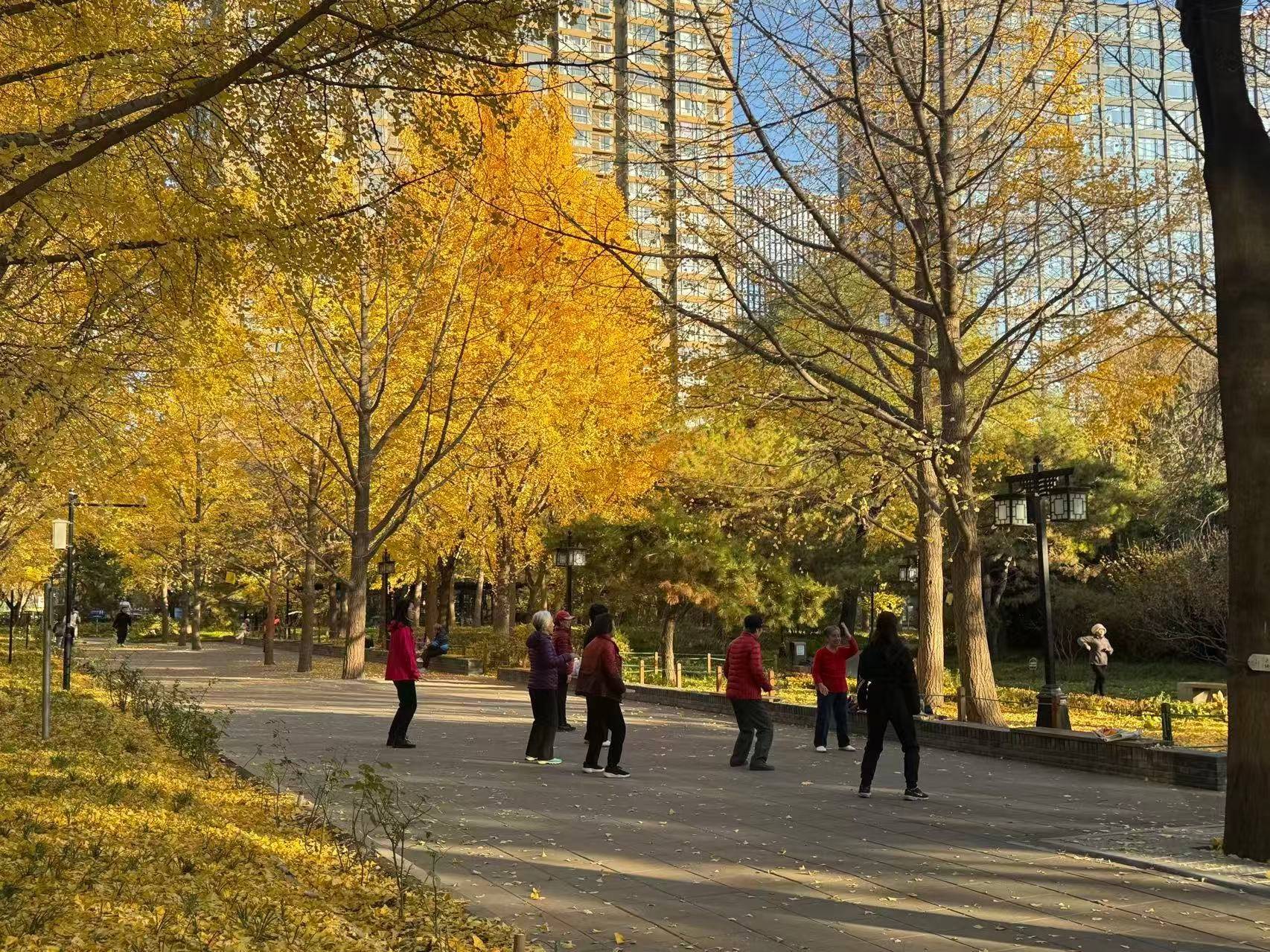 九派新闻注意到辉煌国际,中午12时许,阳光正好,在大兴区一些公园内,有市民身着厚衣服晒太阳,“抓紧时间享受温暖,太阳落山就冷了。”姚女士表示。
