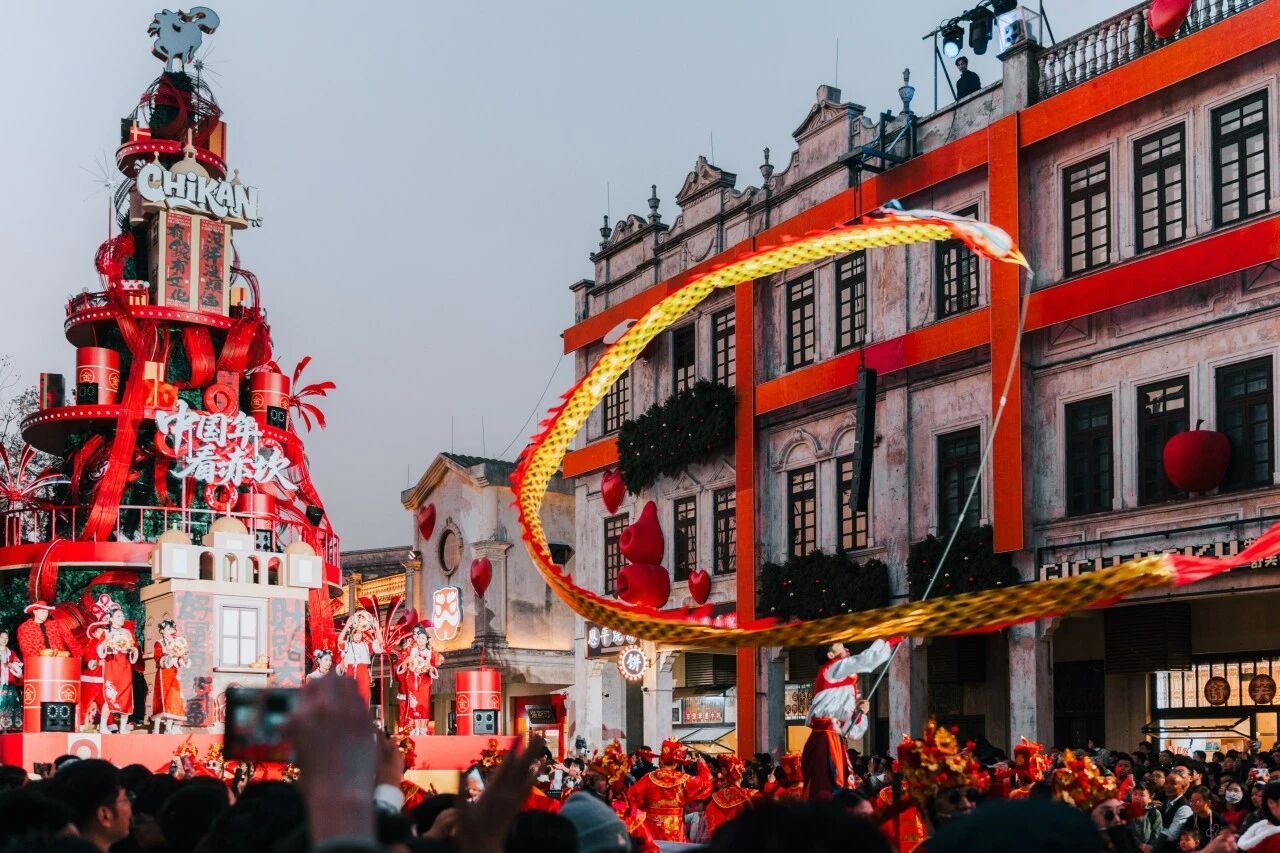 在江门开平,赤坎华侨古镇春节假期期间每天演出数量高达120场,以新春焰火音乐会、马年主题烟花、财神人偶巡游、非遗英歌舞、打铁花等演艺业态丰富游客入园体验。5A级景区开平碉楼文化旅游区则为侨乡建筑换上红灯笼、福字组成的“新年战袍”,村内“自力有喜市”年初一开锣,以亲手体验非遗扎草龙、系祈福丝带、参与集福互动兑换拍立得全家福等活动吸引亲子客源、盘活消费,提供侨乡文创、特色本地小吃等购物选择,让新春出游更有参与感。