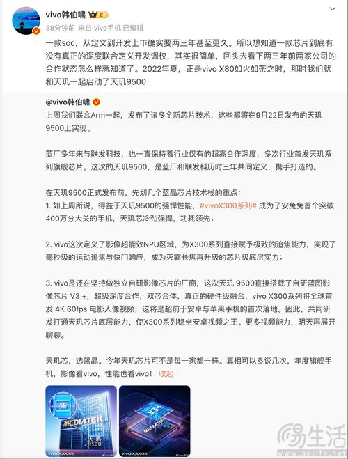 随着vivo X300系列新机外观及硬件配置信息的大量曝光旺润配资,据称将会在10月13日前后发布的该系列机型也吸引了众多消费者的关注。继今天联发科宣布将于9月22日发布新款旗舰主控天玑9500后,vivo方面也透露即将亮相的X300系列新机将搭载这款SoC,并有爆料称其将会首发天玑9500。